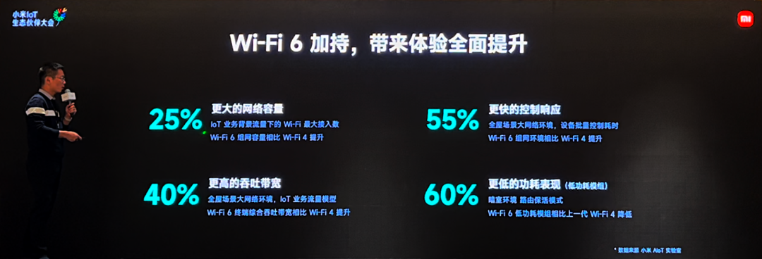 这可能意味着以往使用Wi-Fi 4模组仅能穿墙一堵,无缝升级为Wi-Fi 6模组,可以穿三堵墙,用户体验大大提升。