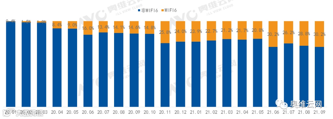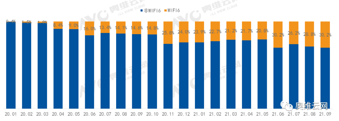 随着各大品牌推出Wi-Fi 6(802.11ax)路由器,并将价格顺利打到200元以内后,这件家庭刚需的产品迅速完成了升级换代,根据AVC线上监测数据,2021年1~9月Wi-Fi 6路由器的销量占比便超过了47%,并每年持续快速增长。