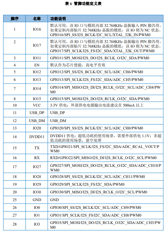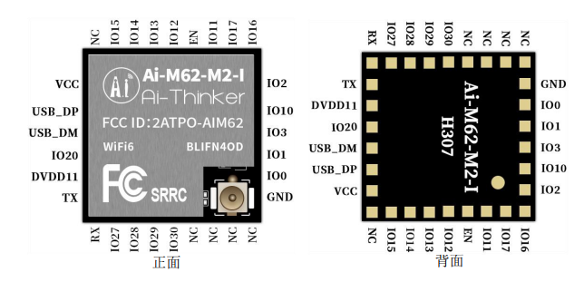 Ai-M62-M2-I 模组共接出30个管脚(如图);管脚功能定义表是相关接口功能定义。