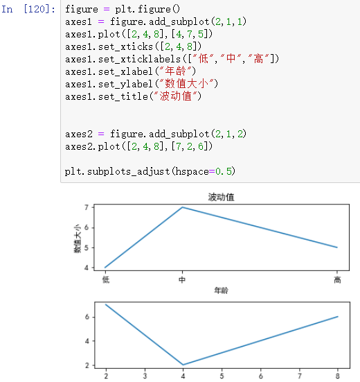 当一张figure画布上,有多个图形的时候,通过如下方式设置,除了通过plt对象外,我们还可以通过子绘图对象来设置与获取标签与刻度。