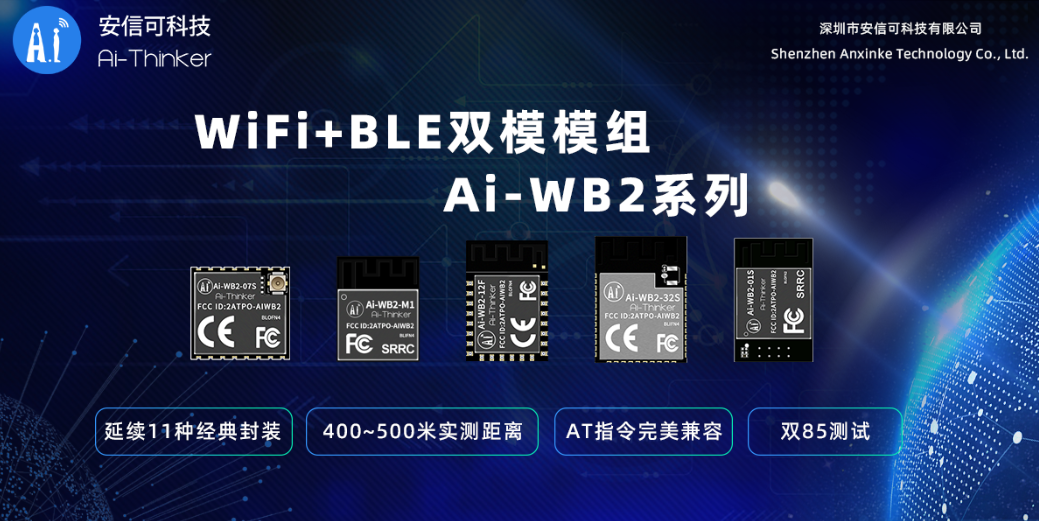 WiFi+BLE蓝牙模组产品为Ai-WB2系列、Ai-WB1系列、Ai-M61系列(即将发布)、Ai-M62系列(即将发布)、TG系列、RTL87XX系列的BW15/BW16;
