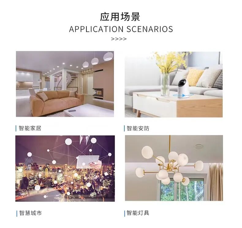 该系列模组可广泛应用于电工照明、环境健康、安防门锁、厨卫电器等智能家居物联网产品,能够为客户提供更加成熟的产品解决方案和更高质量的产品服务。