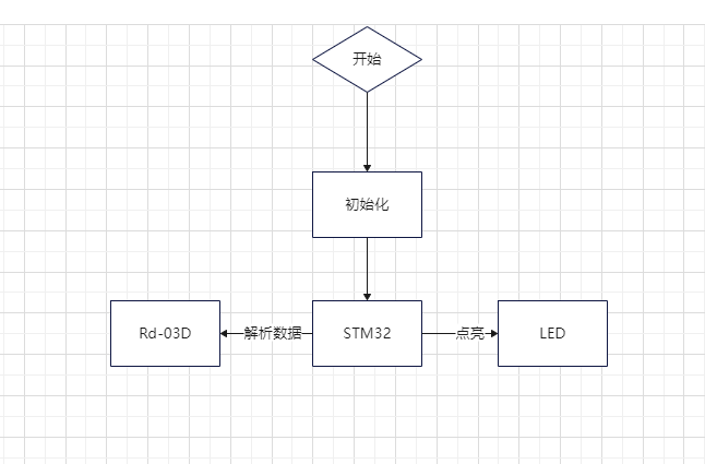 本应用示例使用STM32解析Rd-03D的串口数据,检测人体距离雷达的角度,根据不同角度点亮不同的灯珠:-60度到-20度点亮 LED1,-20度到20度点亮LED2,20度到60度点亮LED3。