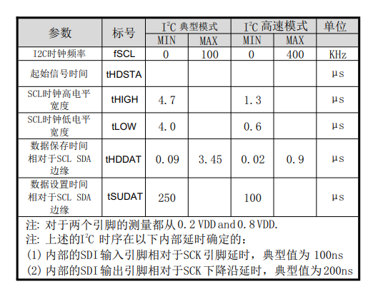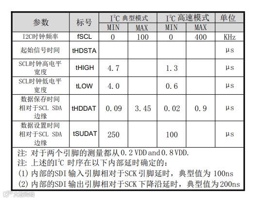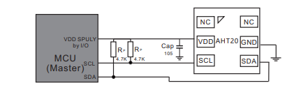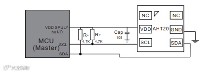 电气特性表中最重要的一点是其供电电压。因为有些模块的供电电压最大值小于5V,而我们会因惯性思维而直接给模块的VCC接5V,这样会烧毁模块芯片。因AHT20的供电电压最大值为5.5V,所以可以用5V进行供电。