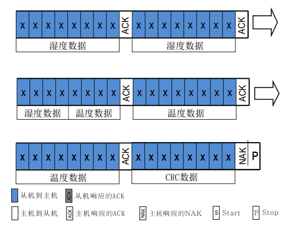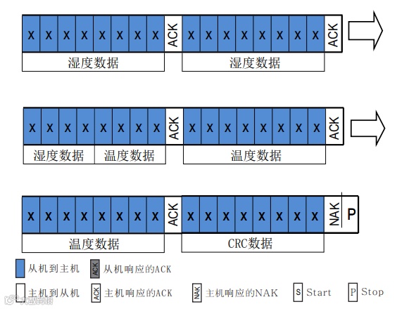 需要注意的是读取到的数据的第四个字节为温湿度共用的字节。