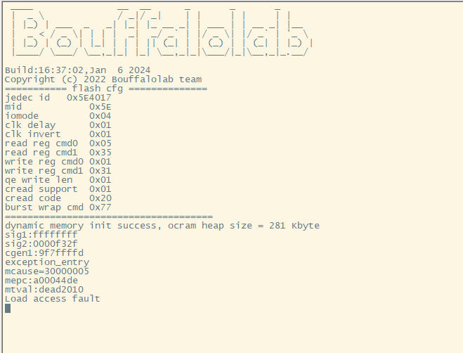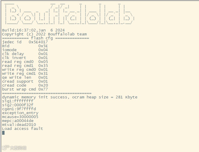 1、程序编译和烧写都正常,但是示例程序跑起来绿灯没有闪烁,打印如下图所示