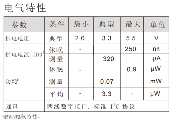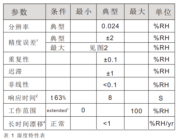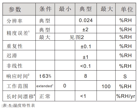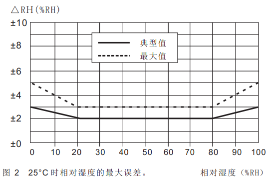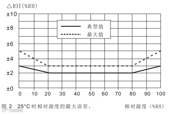 从表中可以看出其工作范围为0至100%,完全满足研发需求。误差典型值也是±2,相对于人而言误差影响基本感觉不到。