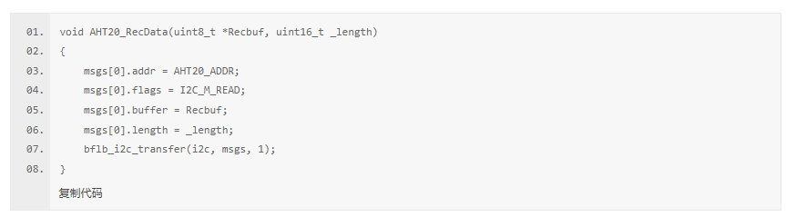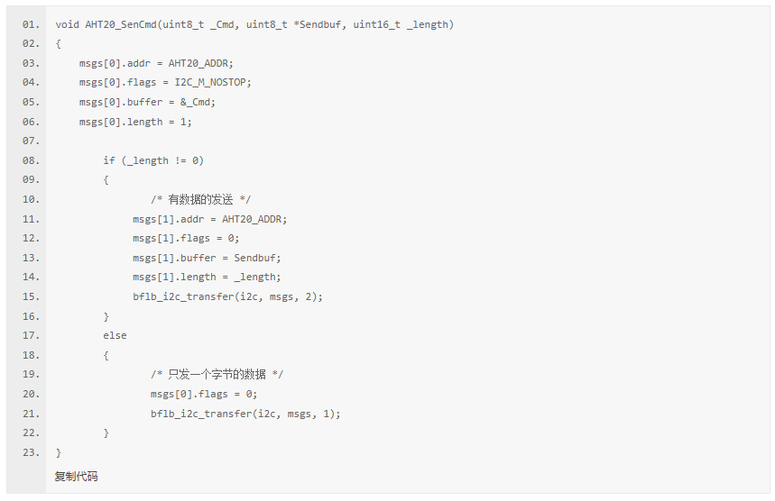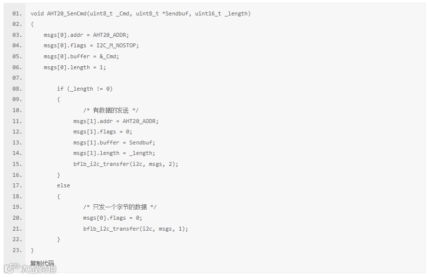 在这里就可以写AHT20的驱动函数了,也可以结合那些指令分装成不同功能的函数。首先是AHT20初始化的代码,代码定义如下: