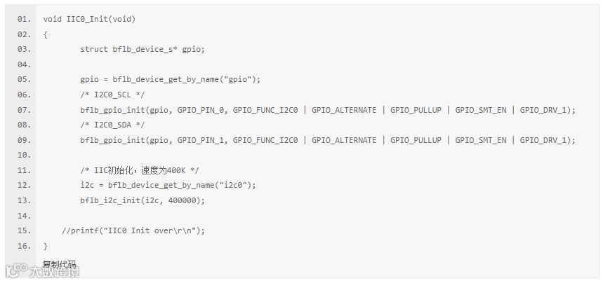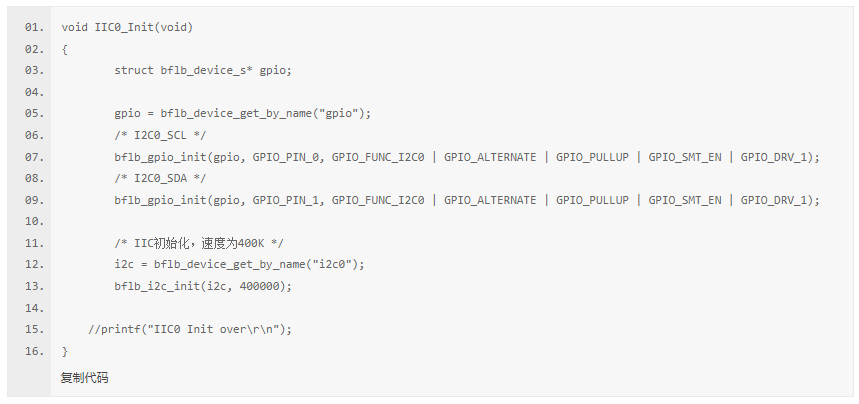 在调用AHT20读取温湿度前一定要对IIC进行初始化,否则程序会崩溃。IIC初始化函数定义如下: