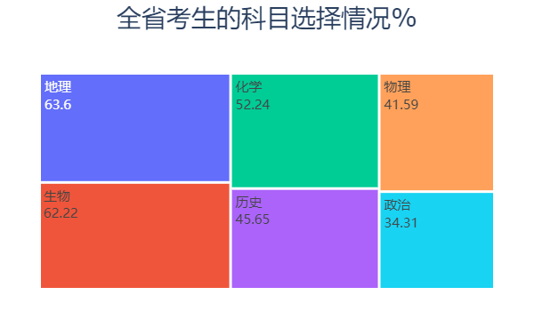 果然,学霸们还是较忠于传统的理科组合(物化生),有89%的人选择了该组合,而传统的文科组合(史地政)没有人选择。或许因为,理科受题目的难度影响较大,当题目较简单时,考生更容易考出高分,而文科更多开放题,考取的高分的概率更小。这也间接导致了,考生倾向选择纯理科或者至少1门理科。