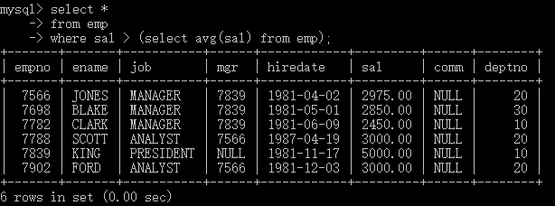 从上面可以看出,子查询常常出现在三个地方,select后面可以跟子查询;from后面可以跟子查询;where后面可以跟子查询;我们这里简称为:select子查询、from子查询、where子查询。