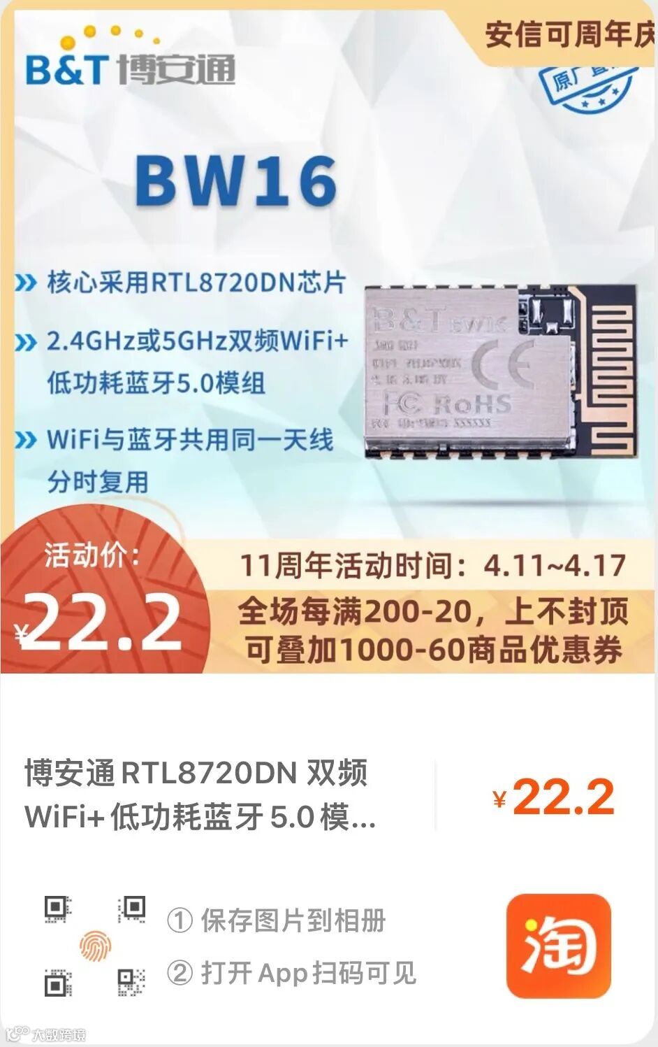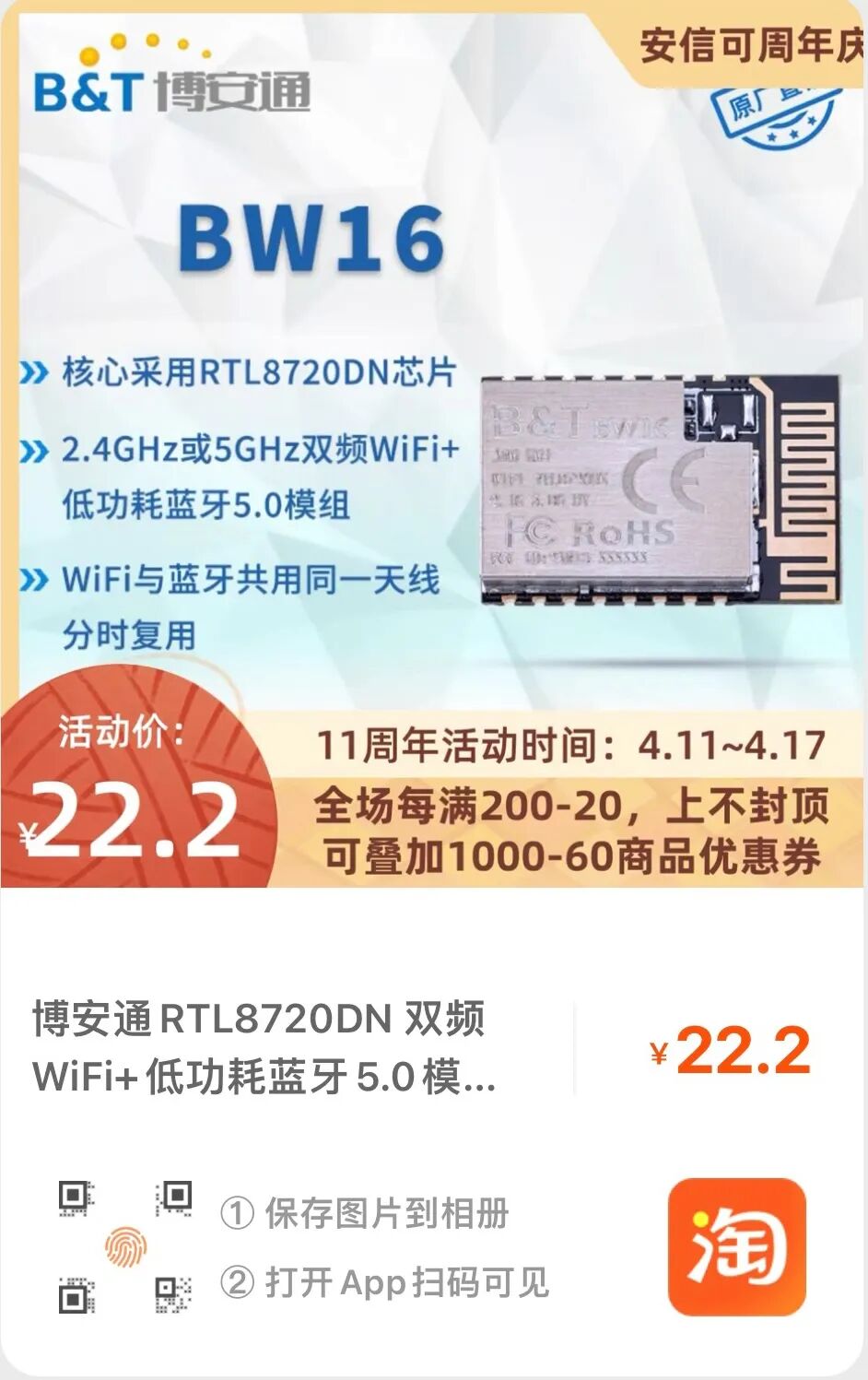 购买WB2系列、BW16、Ra-08、Ra-01SC模组享受叠加500-30或是1000-60商品优惠券,限时福利,先到先得!