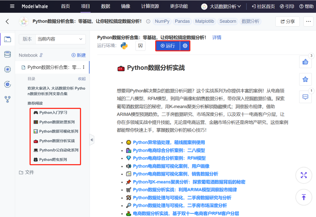 点击文末「阅读原文」,浏览器阅读更佳,有更多免安装Python环境,在线运行的Python数据分析实战案例,学习这些Python实战案例,可以助你提升Python数据分析技能。