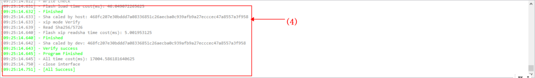 5.5 按照以上步骤烧写完后,模组上电读取串口打印如下日志说明烧写成功。