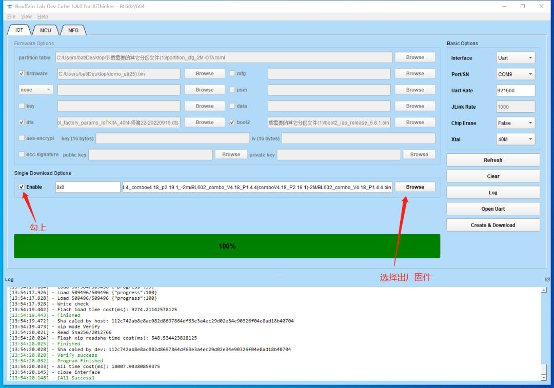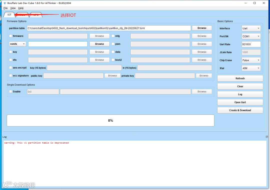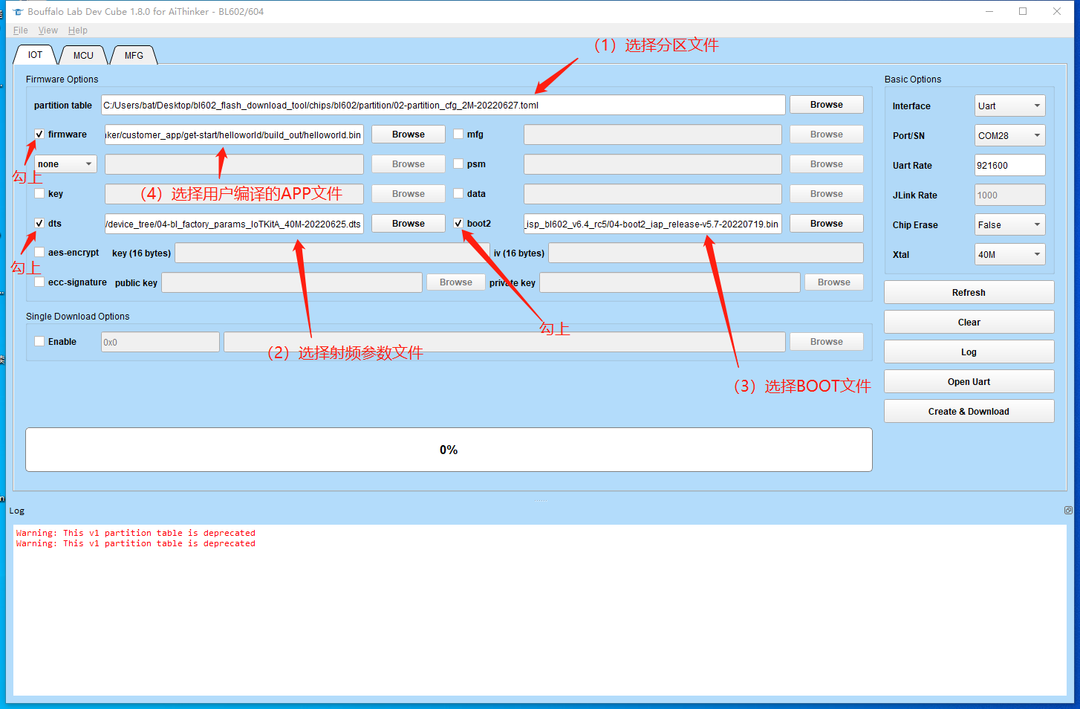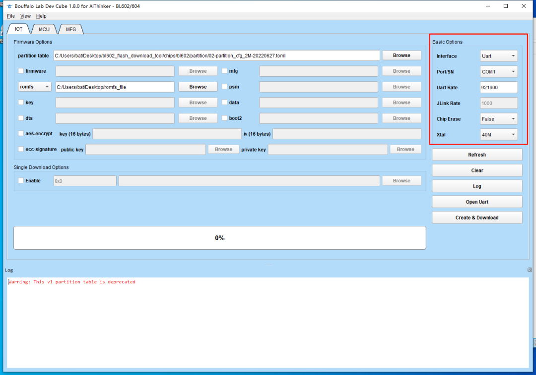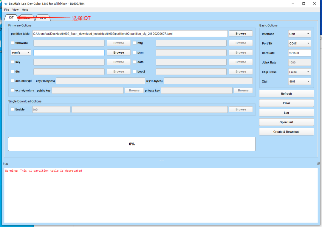 Uart Rate:当选择 UART 进行下载的时候,填写波特率,推荐下载频率设置成921600;