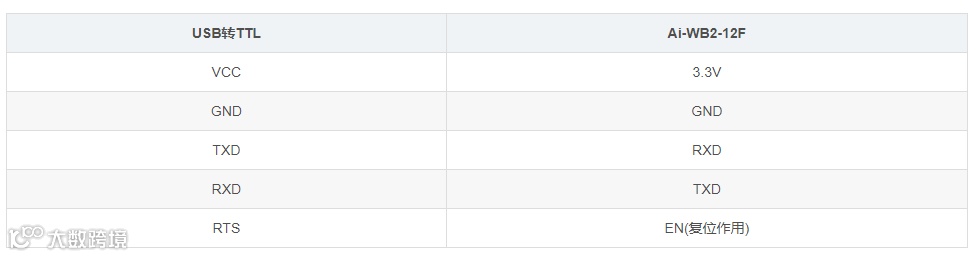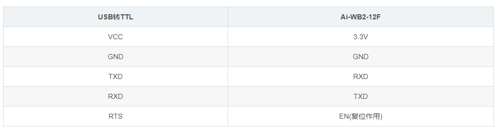 以Ai-WB2-12F模组为例,按照如下表格进行接线: