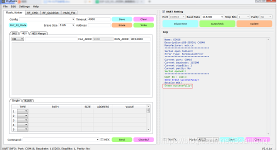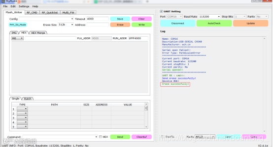 点击Erase进行擦除,擦除成功会出现文字提示,如图所示: