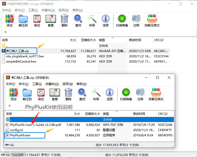 打开安信可串口调试助手和PhyPlusKit工具。