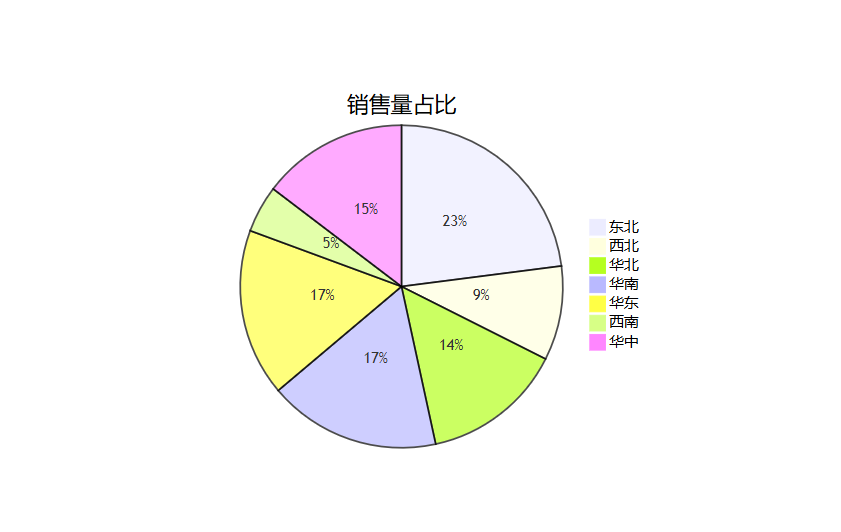 pietitle 销售量占比"东北" : 486"西北" : 200"华北" : 300"华南" : 365"华东" : 355"西南" : 100"华中" : 310
