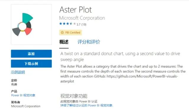 学习tusimpleBI插件后,可尝试使用PowerBI软件,该软件是微软旗下的软件,可以很好的衔接Excel工具的使用,PowerBI软件不仅可以做数据处理,还可以做数据可视化,并且有多样的视觉对象,丰富了图表内容,比如这里使用Aster Plot视觉对象来创建玫瑰图。
