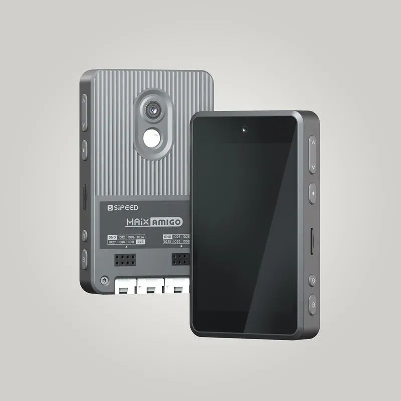 具备前后各 30W 像素摄像头,3.5 寸TFT 电容触摸显示屏, 是一款能够进行多媒体音视频处理 AI 开发板,其搭载的 KPU(神经网络处理器) 算力理论高达 1TOPS ,用户可使用其快速进行人脸识别、物体分类等多种 AIoT 开发。