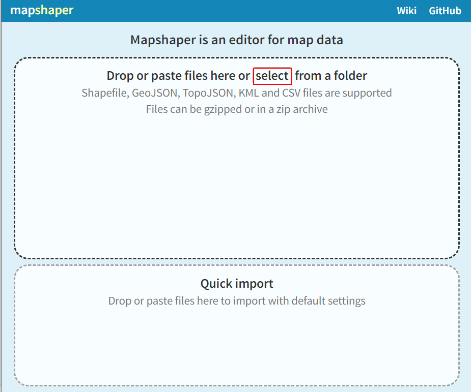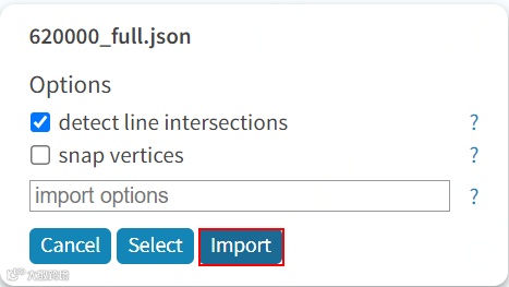 打开mapshaper官方网址,点击select导入之前的.json文件。