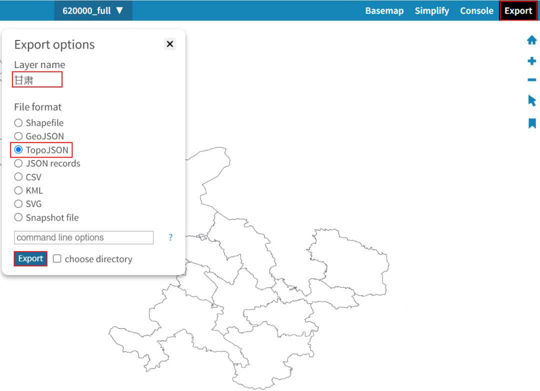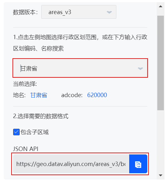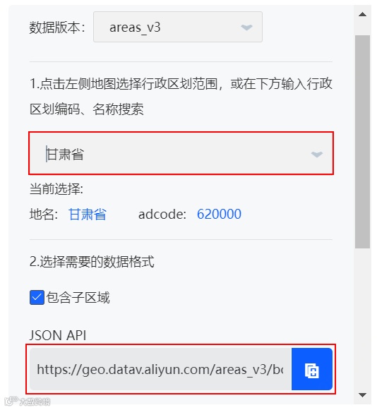 比如这里使用甘肃省的地图层,输入甘肃省,然后复制JSON API的链接。
