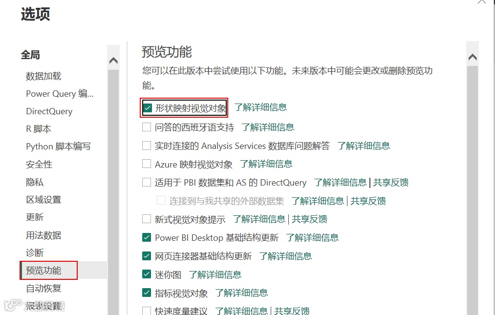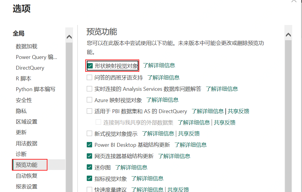 重新打开PowerBI软件后,在视觉对象中即可看到形状地图。