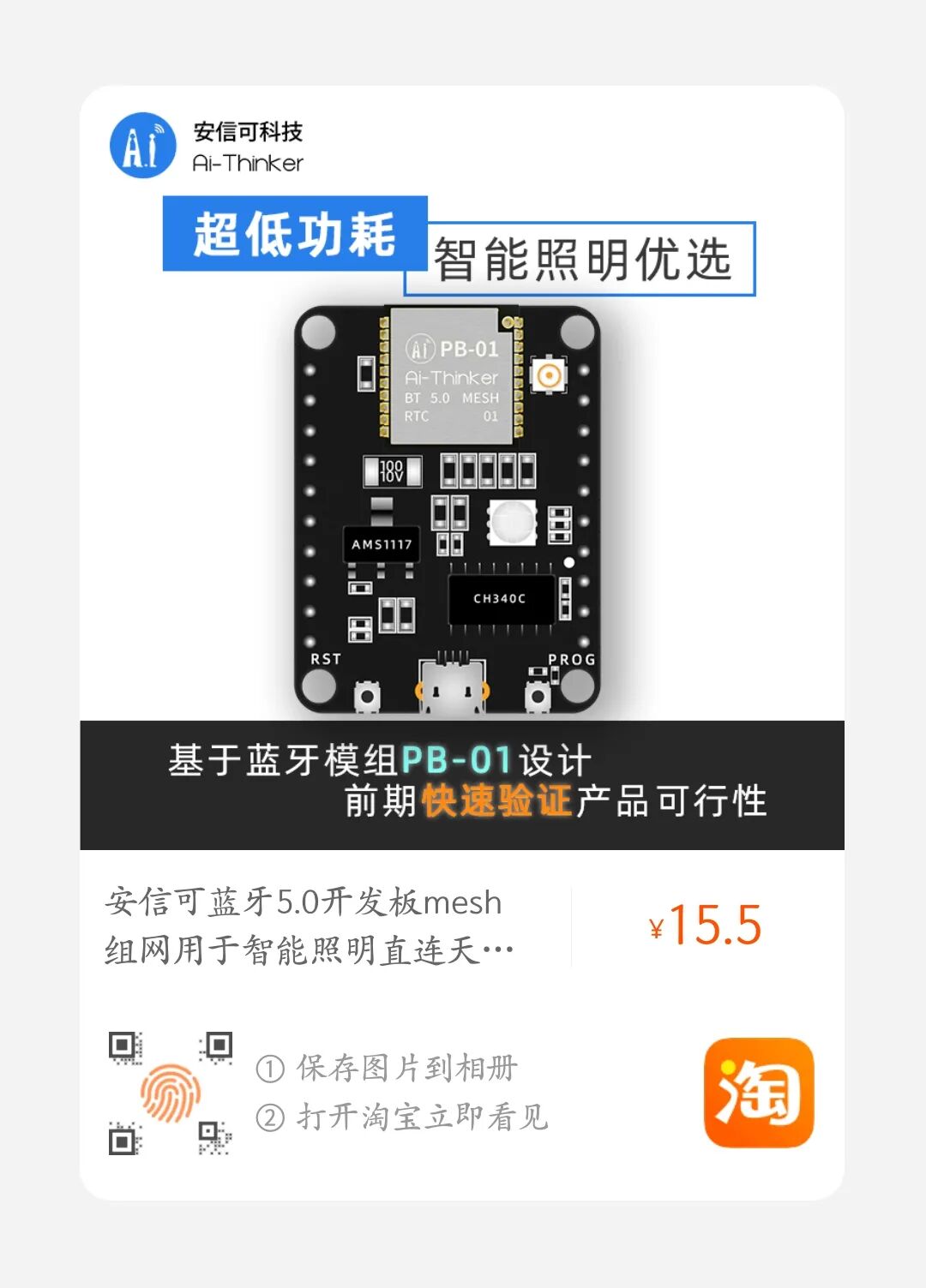 符合BLE 5.0的低功耗蓝牙模块,支持SIG MESH组网;