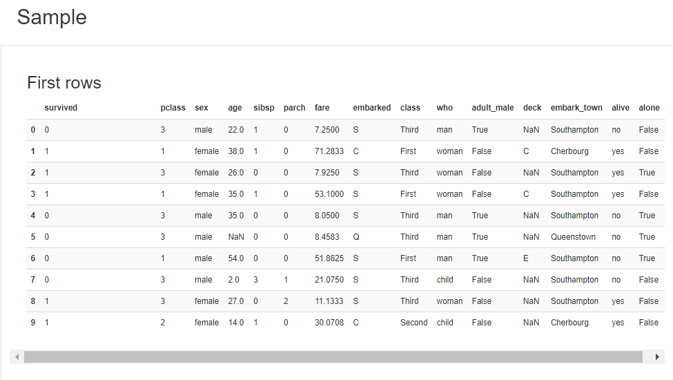 5、样本信息展示:突出展示一些样本信息,这里展示前10行数据信息,类似于df.head()的功能,对数据做一个预览。