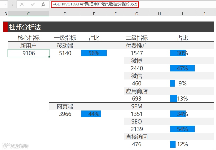 =GETPIVOTDATA("新增用户数",数据透视!$B$2,"一级指标","网页端","二级指标","直接访问")
