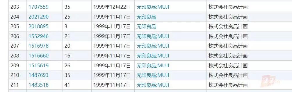 小编去商标局输入无印良品查询了一下,并结合32.cn知协的商标查询做出如下分析。