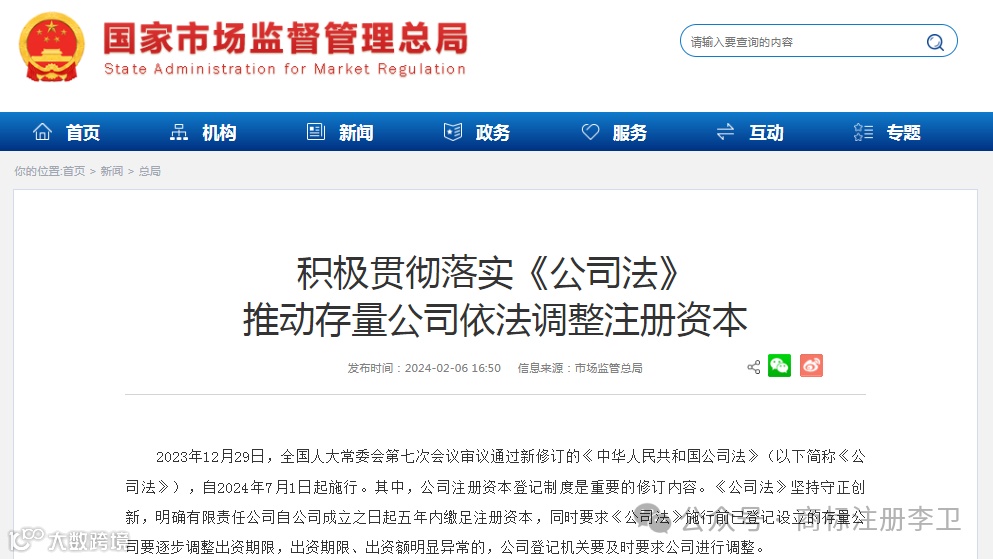 自从新公司法出来之后,大家都很关心以前已经成立的公司,注册资金什么时间缴纳呢?之前新公司法里面只是说会给存量公司有一个过渡调整的政策,但是这个政策一直没有出台相关的执行细则,那么这两天呢,市场监督管理总局出了一个文件,公布了对于存量公司注册资本实缴的过渡期政策。下面我们就带着各位老板一起来解读一下这个文件。