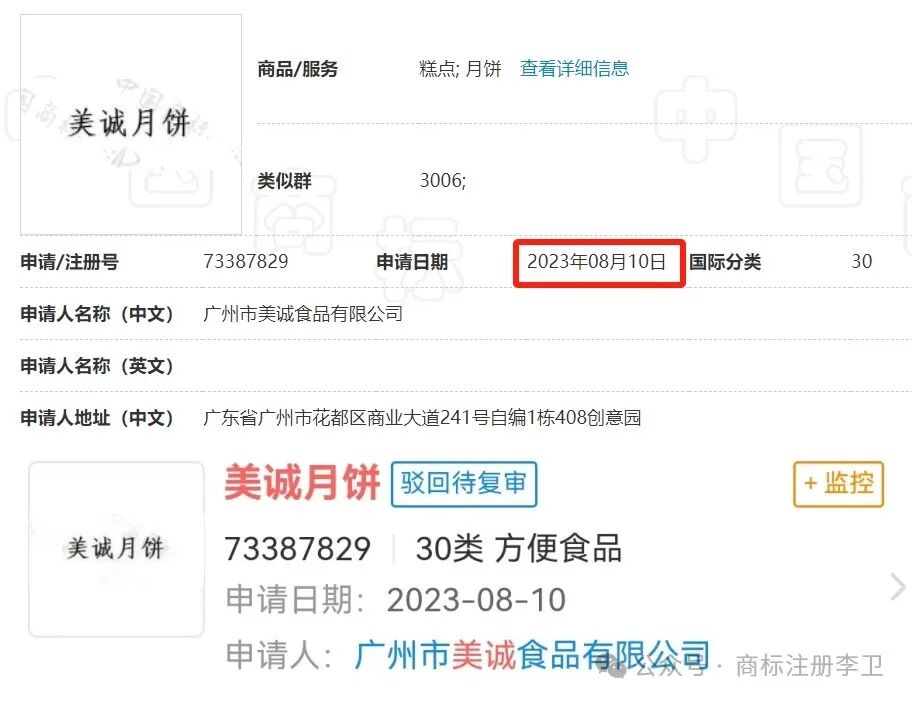 1、2023年08月10日注册“美诚月饼”30类,2024年06月19日被驳回了