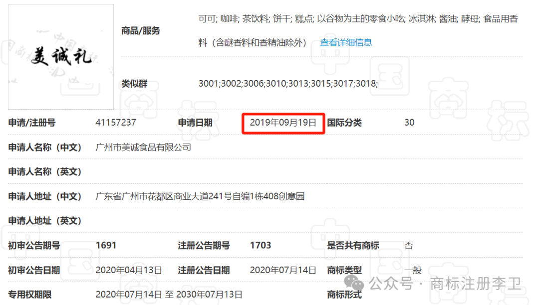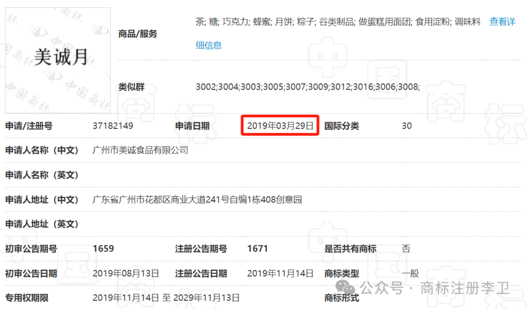 2、2021年08月09日 转让了“美诚月,美诚礼”来使用;2022年01月14日转让人“美诚”30类,产品:粽子; 谷类制品; 做蛋糕用面团; 调味料
