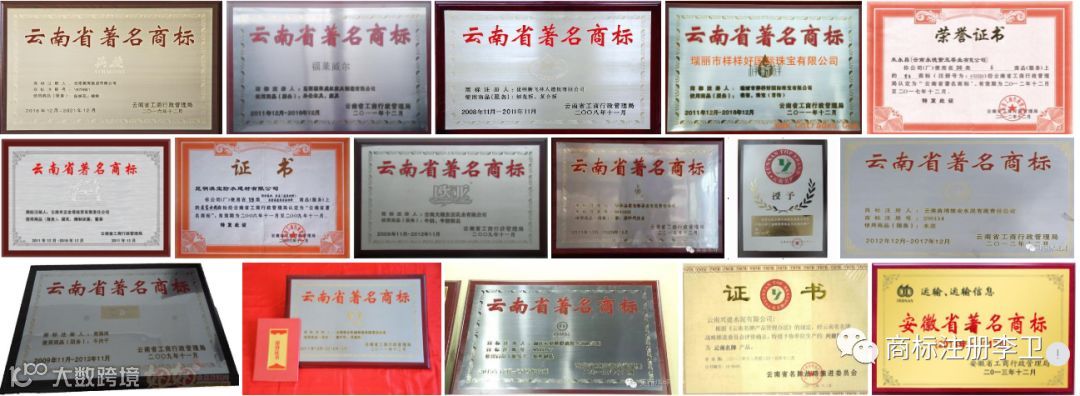 包括:集体商标、证明商标、中国著名商标、市知名商标,省著名商标,还有相关部门和协会的其它商标。