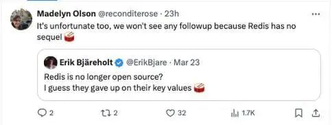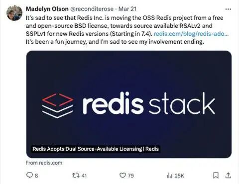 “Redis 不再开源了吗?他们放弃了自己的核心价值观。”“也很不幸;Redis 没有续集了。”