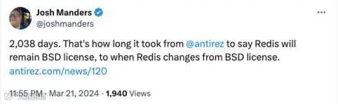 曾做出承诺的 Redis 作者 Antirez(Salvatore Sanfilippo)对此表示他并不知情,但也能理解许可证的更改。