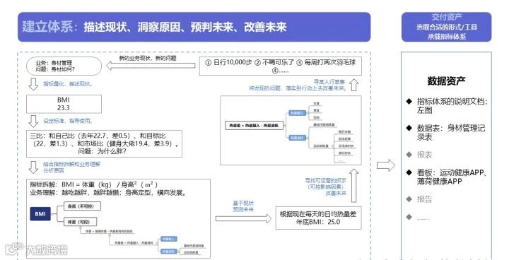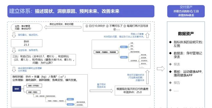(3) 交付资产:将指标体系转化为数据资产交付。例如,一套指标体系的说明文档、数据表格、报表、看板、报告等。