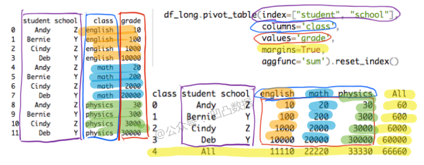 由于pivot_table()数据透视表的参数比较多,就不再使用案例来演示了,具体用法可参考下图。
