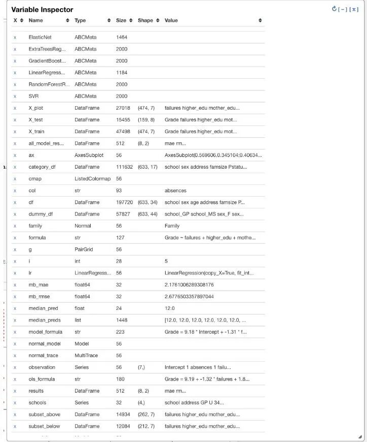 这个工具对于从 RStudio 迁移过来的数据科学家来说是无价之宝。如果你不想继续打印 df.shape 或无法重新调用 x 的 type,这个工具对你来说也同样重要。