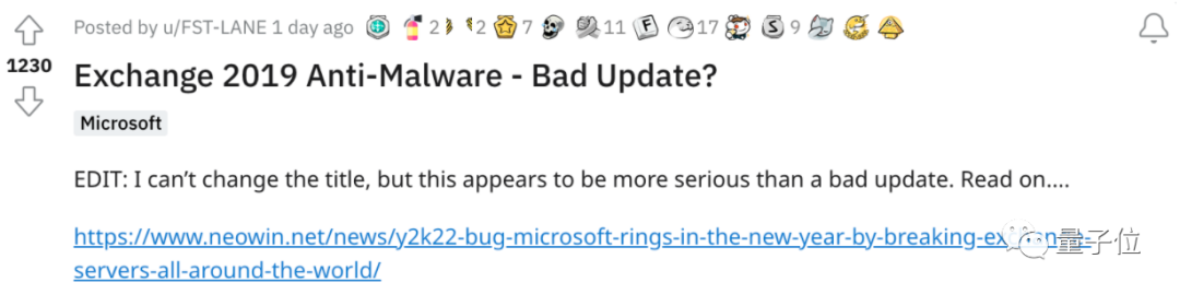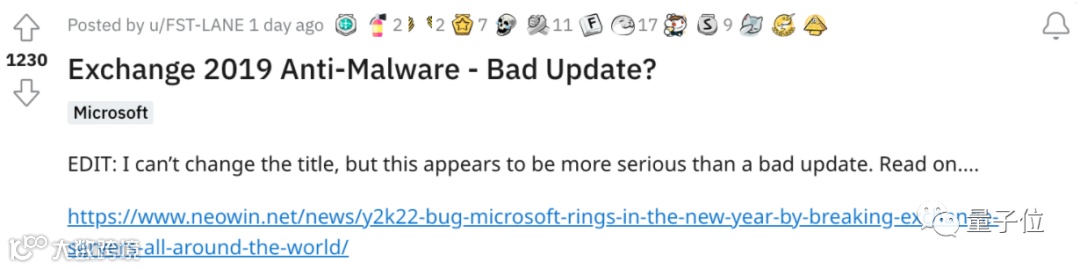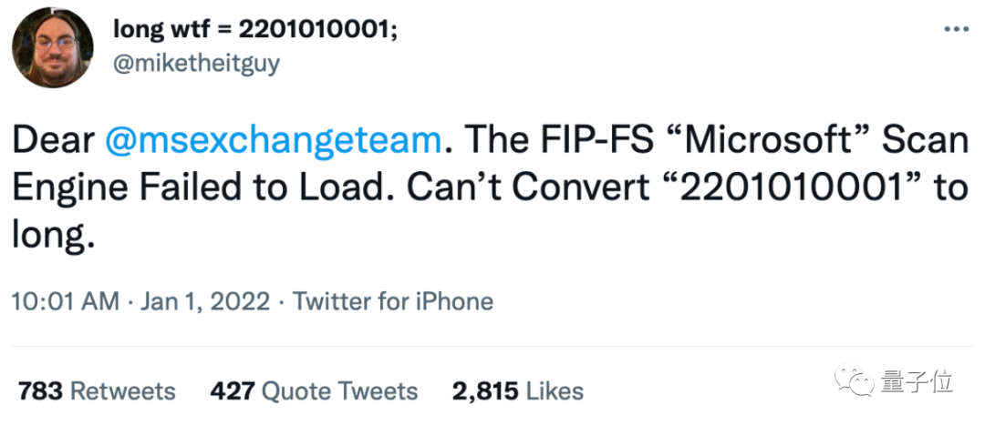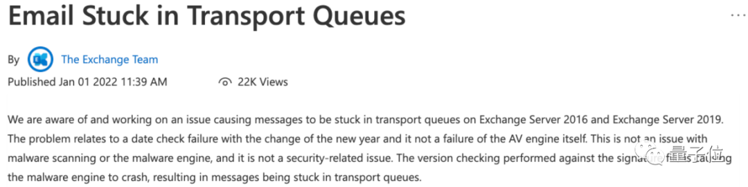 据一位Exchange管理员Joseph Roosen表示,这是一个由于“2022年”的到来而导致的bug。