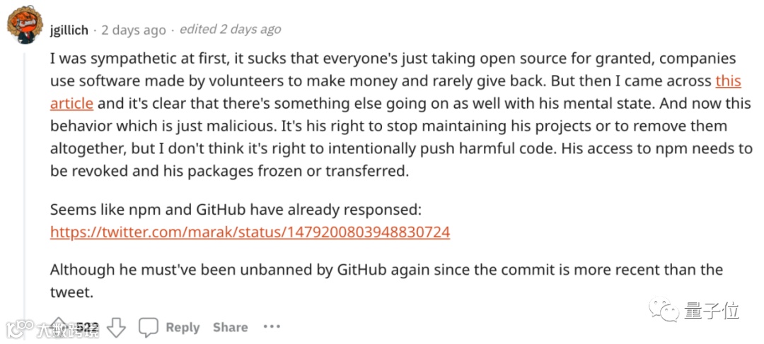 不管怎么说,在给全世界近两万个项目搞出乱码的大篓子之后,更多关于Marak这位程序员本人和开源社区的讨论,是停也停不下来了。