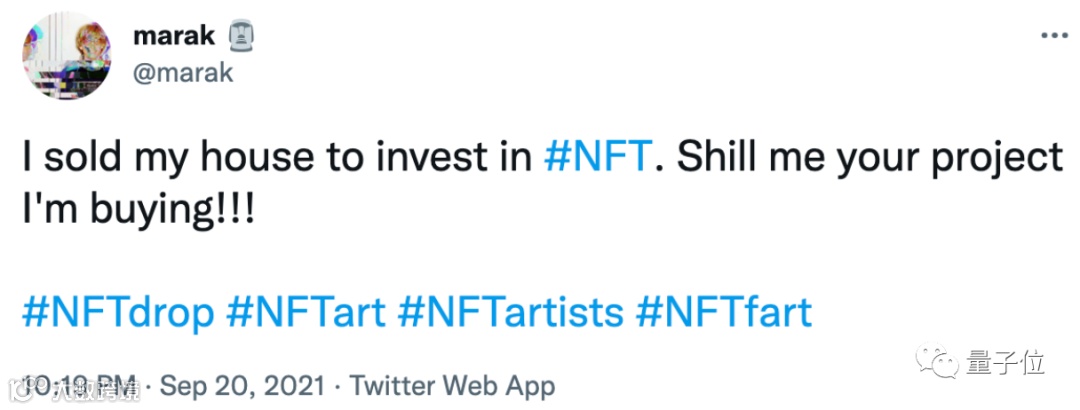 2021年他在推特上称,自己把房子都卖了,押宝NFT。