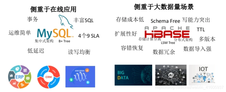 HBase:一般需要和较多大数据组件一起配合完成应用场景,场景架构的设计、实施存在较大的挑战