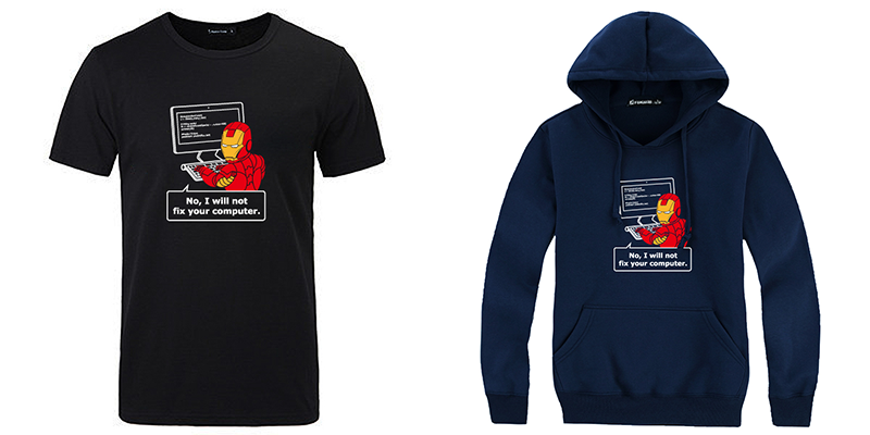 跟老公都是程序员,然后给老公买了两件,跟同事又拼了两件,同事和老公都觉得质量不错,是纯棉的,洗过了之后也不错没有掉色等等问题,图案印花也很好,清晰,快递很给力,总之就是物有所值好,大家可以放心购买咯!