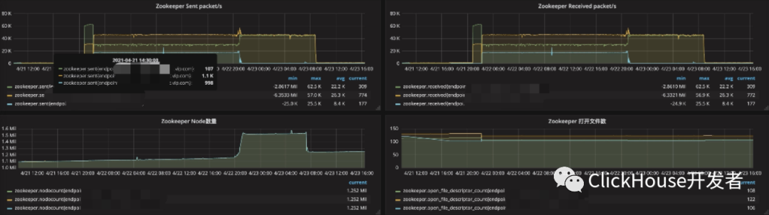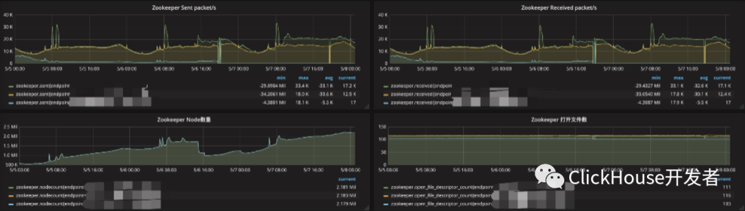 实时CK集群使用多套Zookeeper集群,根据表数据量来拆分到不同Zookeeper上,减轻zookeeper集群的读写压力