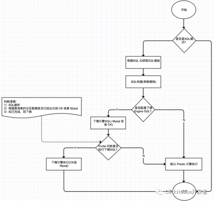 通过 Chaos (指标服务) Client API 来查询,业务传入查询条件,指标服务来构建业务SQL。指标服务中支持了 Engine 下推的功能,即如果业务查询的SQL数据日期已经出仓到CK,那么指标服务在查询的时候,就使用CK引擎,如果业务使用的数据没有出仓到CK,那么就使用 Presto 来查询。这样既保证了服务SLA,又可以提高某些场景下的SQL查询速度。如图4所示。