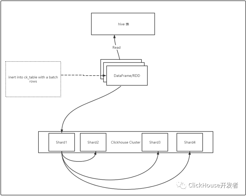 我们按照配置的需要分片的字段通过spark的repartition算子按照指定key重分区,将分区ID按照clickhouse的shard_num 取模决定写入的分片。