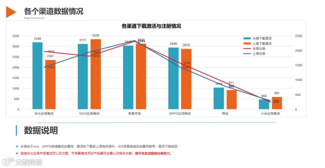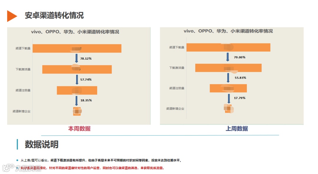 注:数据情况的原因说明最好不超过2个,切忌罗列一堆原因,让阅读者找不到重点。然后,引出渠道分析。